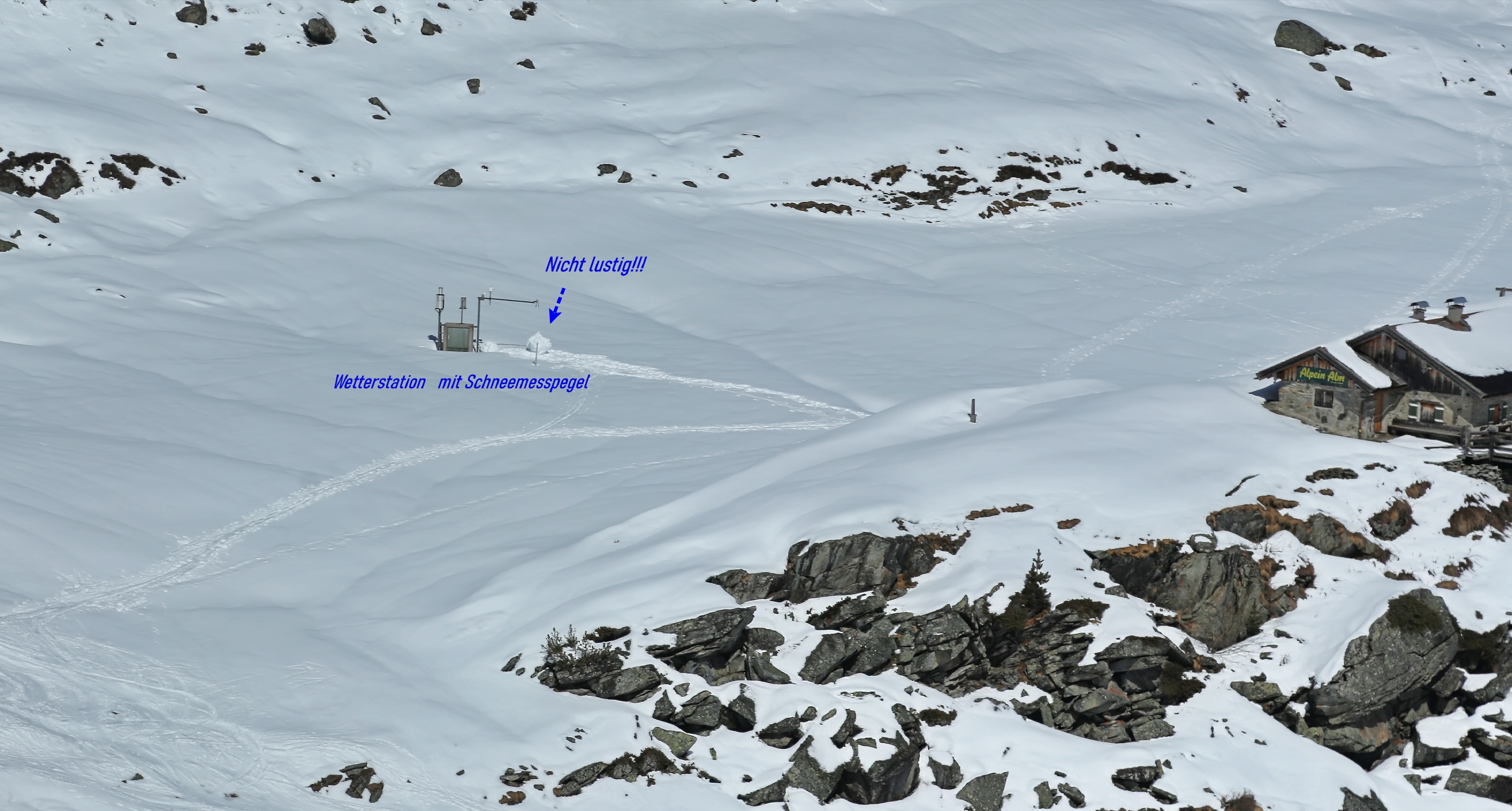 Zwischen Seduck und der Hütte gibt es nahezu eine geschlossene Schneedecke. Lediglich hinter der Ober Iss Alm gibt es ein apers Teilstück!